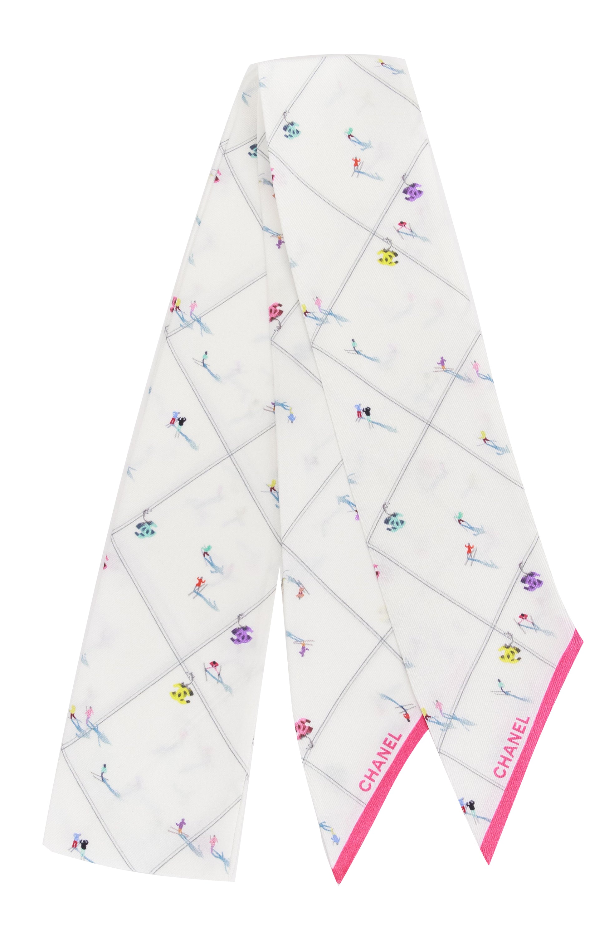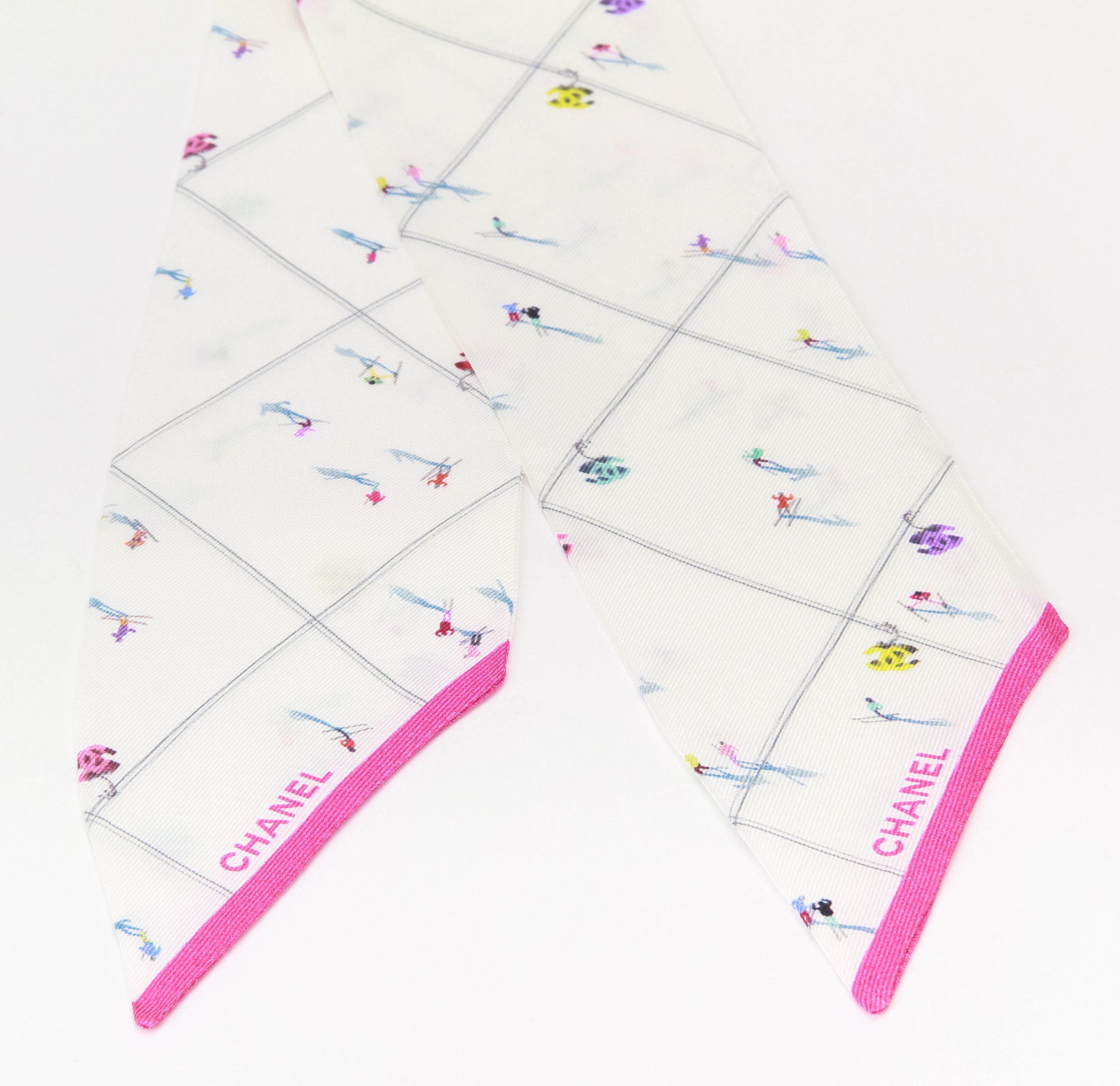 Chanel brand new white/celeste, pink silk twilly, coco niege collection, 100% silk, 48" x 2"