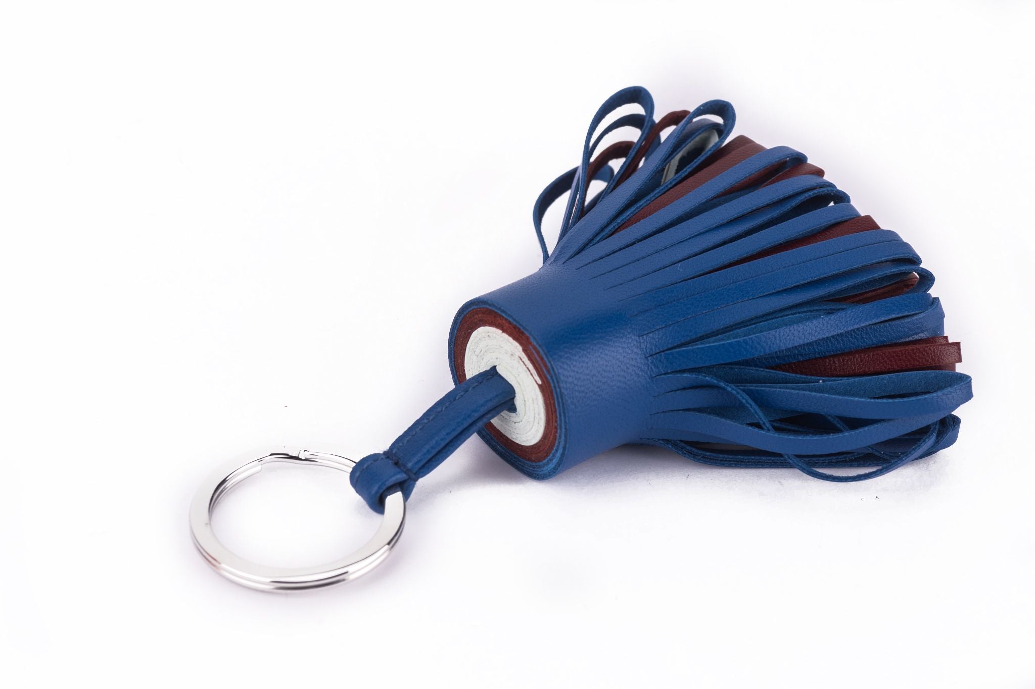 This Hermès Lambskin Carmen Tassel Key Holder features a small tassel of soft lambskin leather in bleu and key ring in silver. Comes with original box. Brand new.