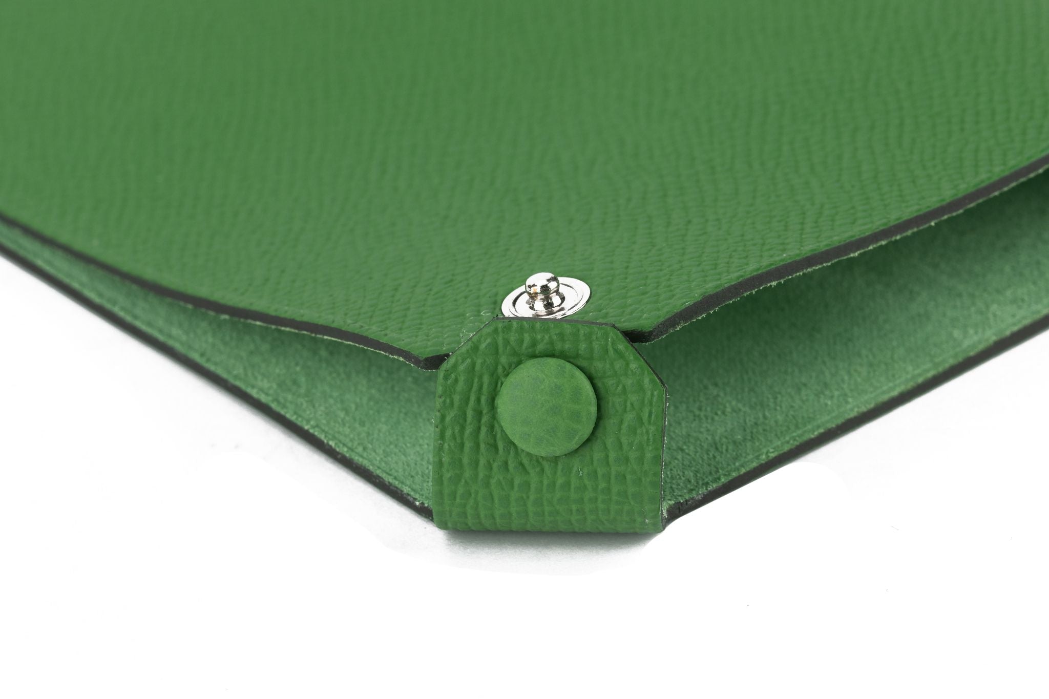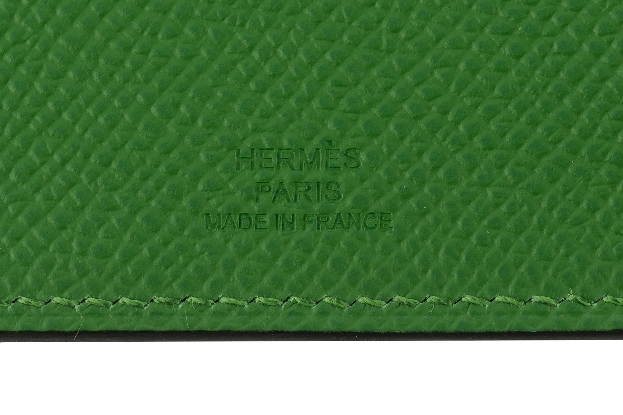 This Hermès Epsom Tarmac PM Passport Holder in Vert. This passport holder is a simple case crafted of textured leather in green. The holder opens with a leather tab and a snap to a suede interior. Comes with original box.
