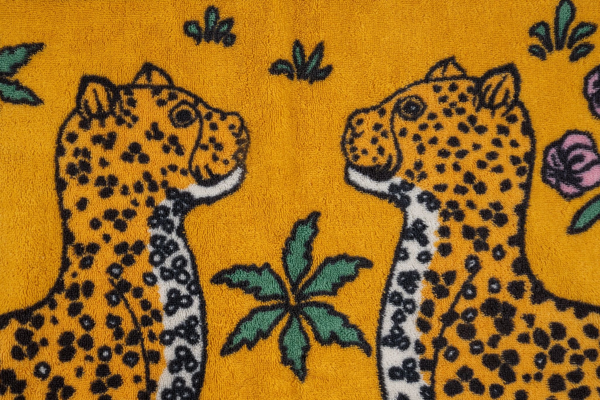 This Hermès Leopard Terry Cloth Beach Towel is in 100% cotton and features screen printed leopards and a solid orange back. Collectible design, excellent condition.