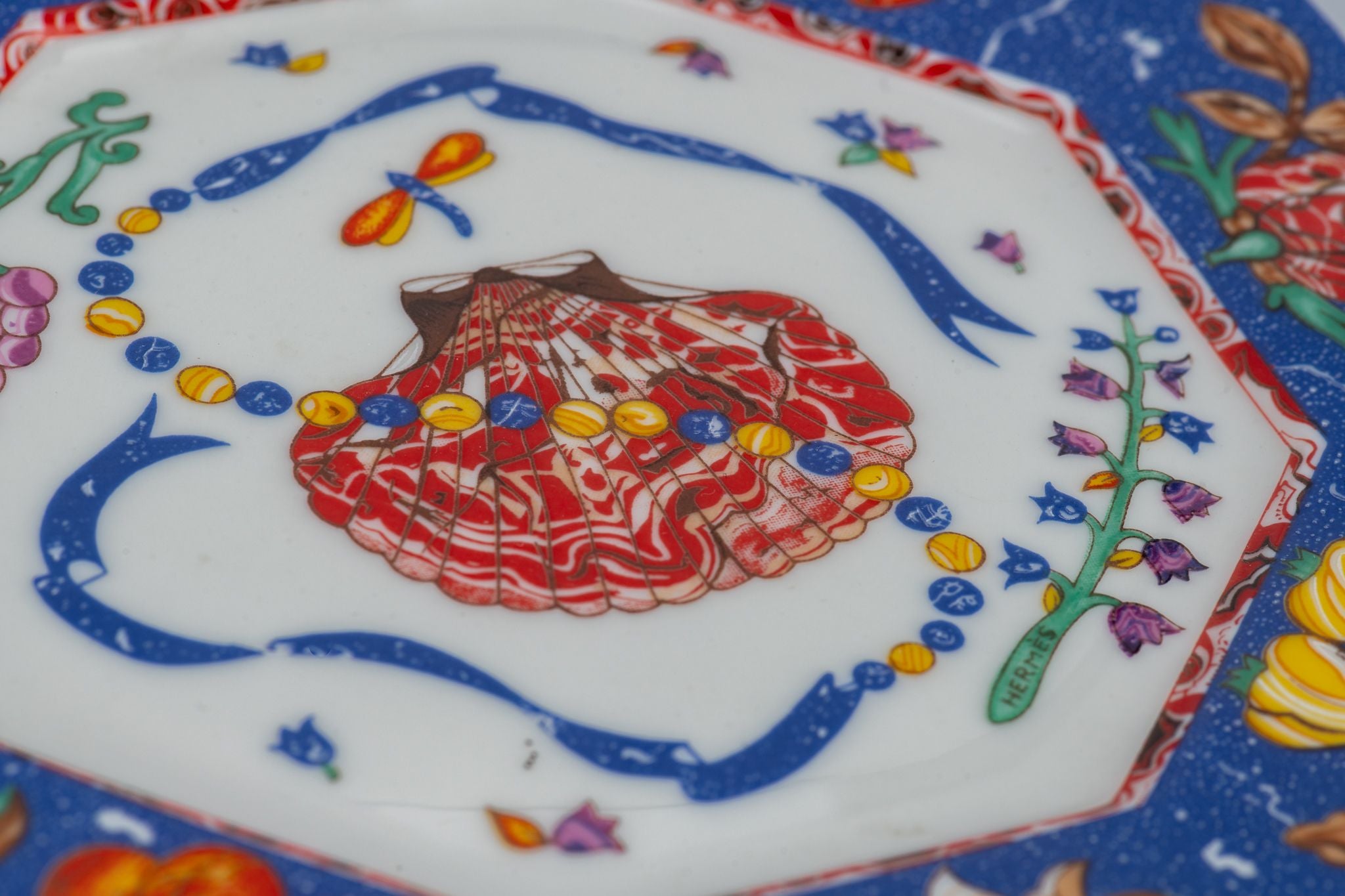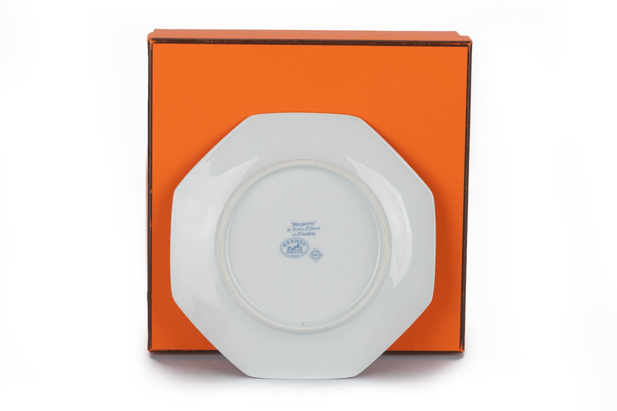 This Hermès Marqueterie de Pierres D'Orient plate is a vintage piece made from porcelain features an octagonal shape and elegant design. Comes with original box.