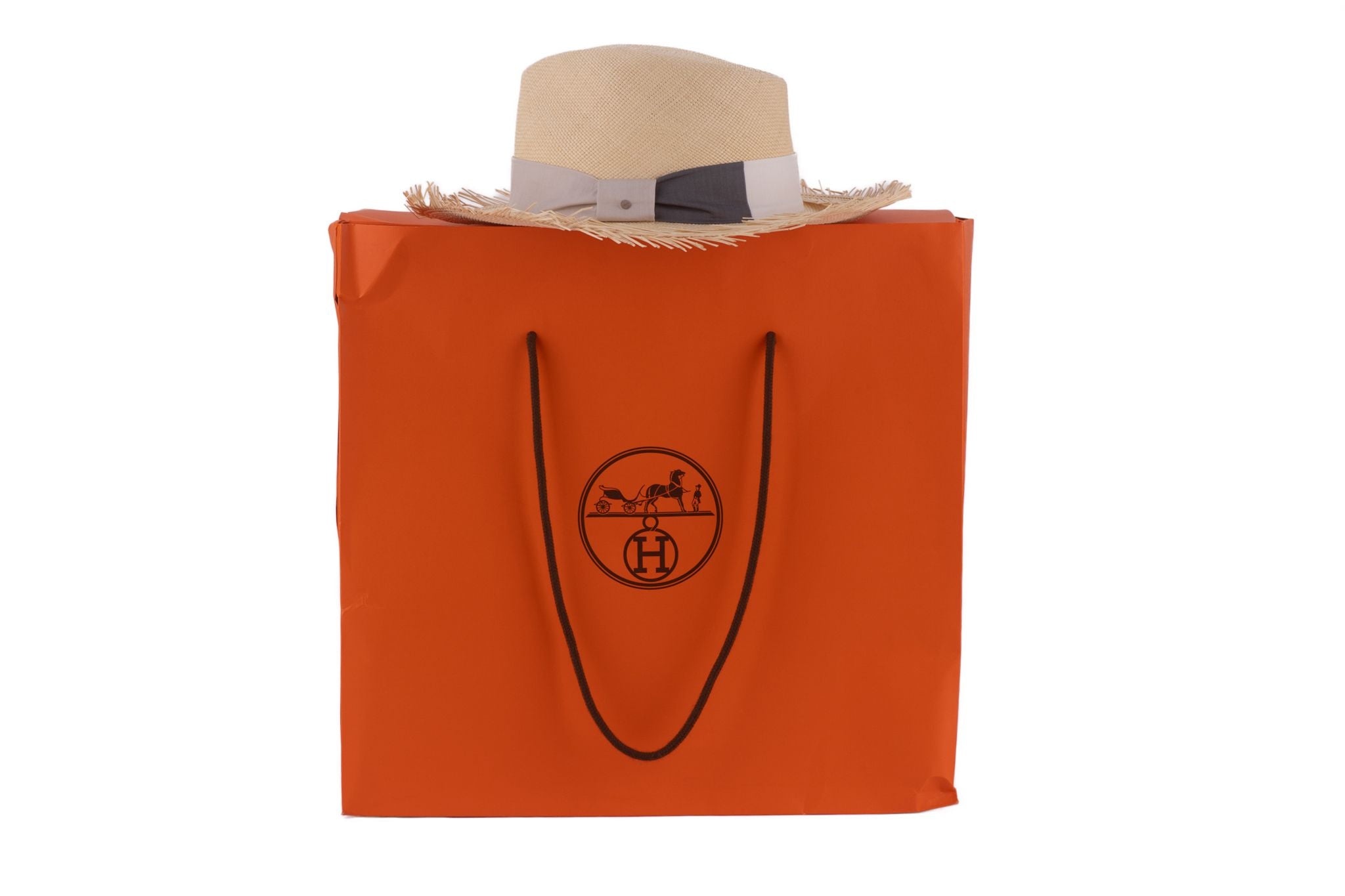 Hermès hat in Panama Brisa with fringed brim, "Rainbow" band and bow detail. Brushed palladium plated Clou de Selle detail.Size 58. Comes with original tag and shopping bag ( slightly damaged).