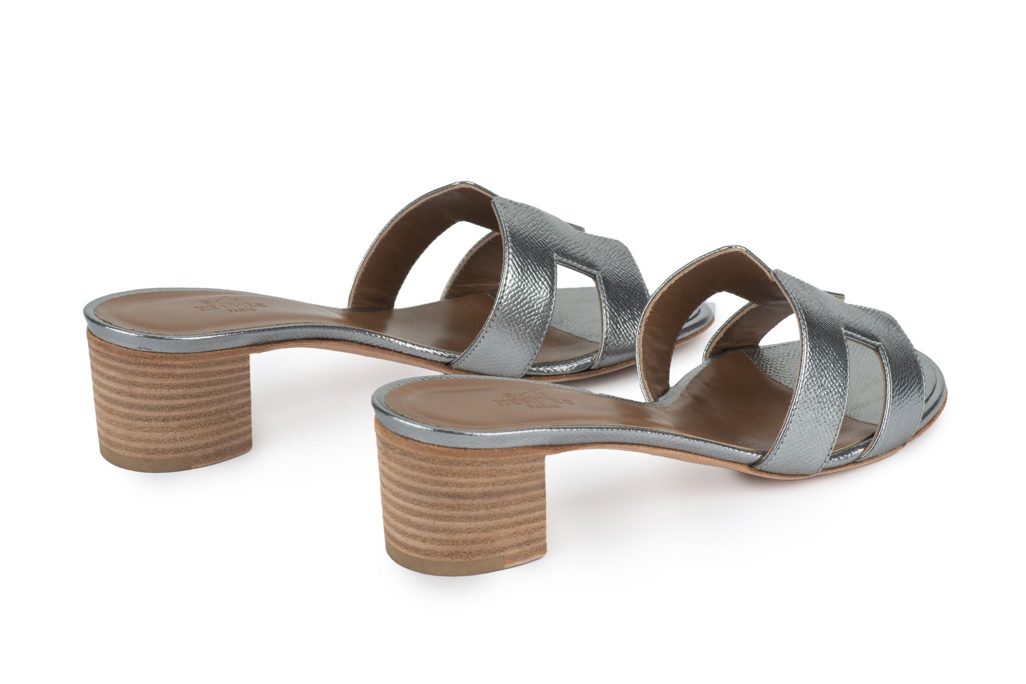The Hermès Oasis Sandal in calfskin with iconic "H" cut-out. An iconic Hermes style, this silhouette is an essential piece in every wardrobe. 37 1/2 italian size, us 6.5. The heel measures 2". Come with double dust cover and original box. Brand new in unused condition.