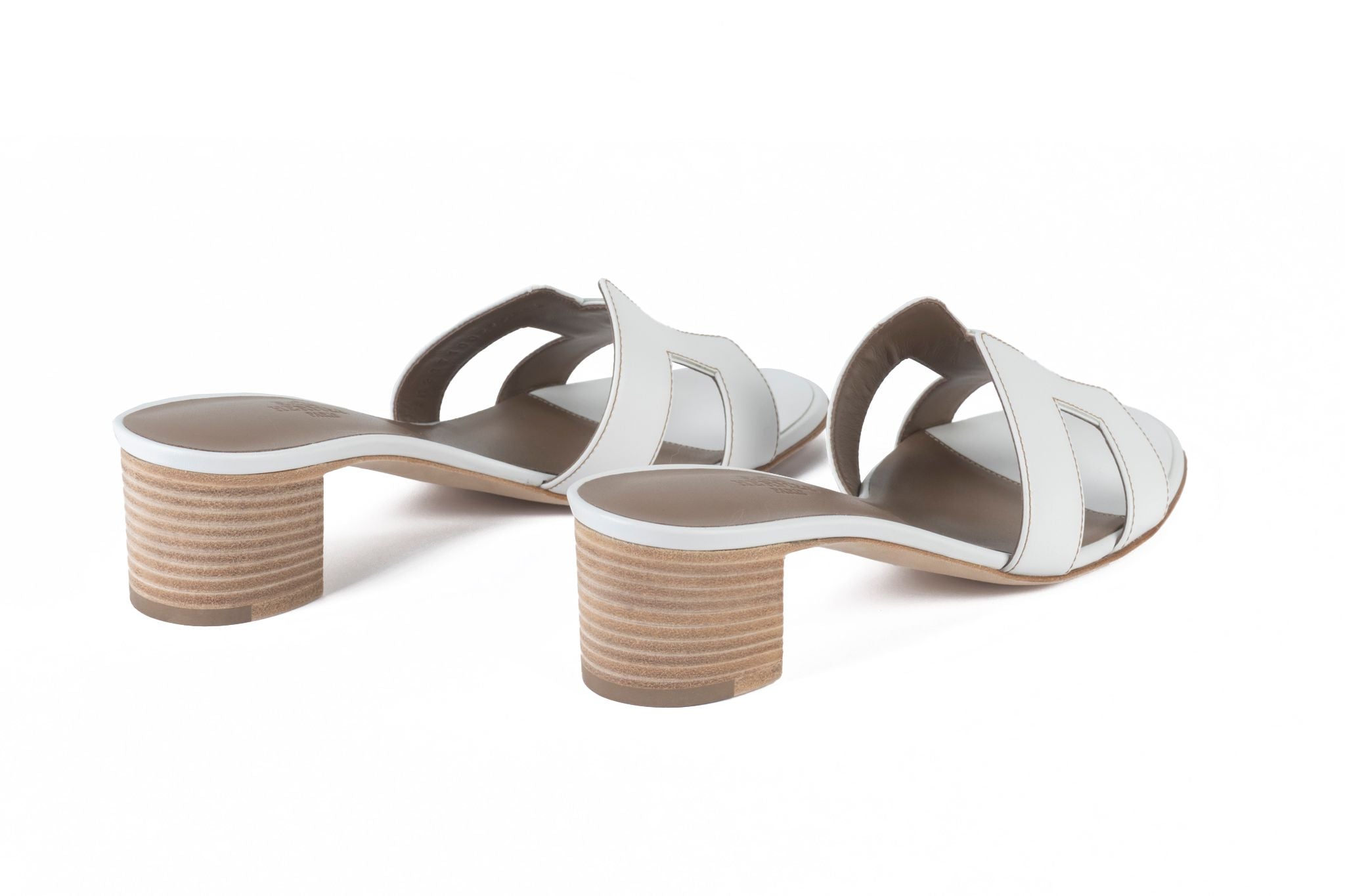 This Hermès Oasis Sandal in White calfskin with an iconic "H" cut-out is an essential piece in every wardrobe. Leather sole with an hazelnut insole and lining. Italian number 37.5. Come with ribbon, original dustcover and box. New in unused condition.