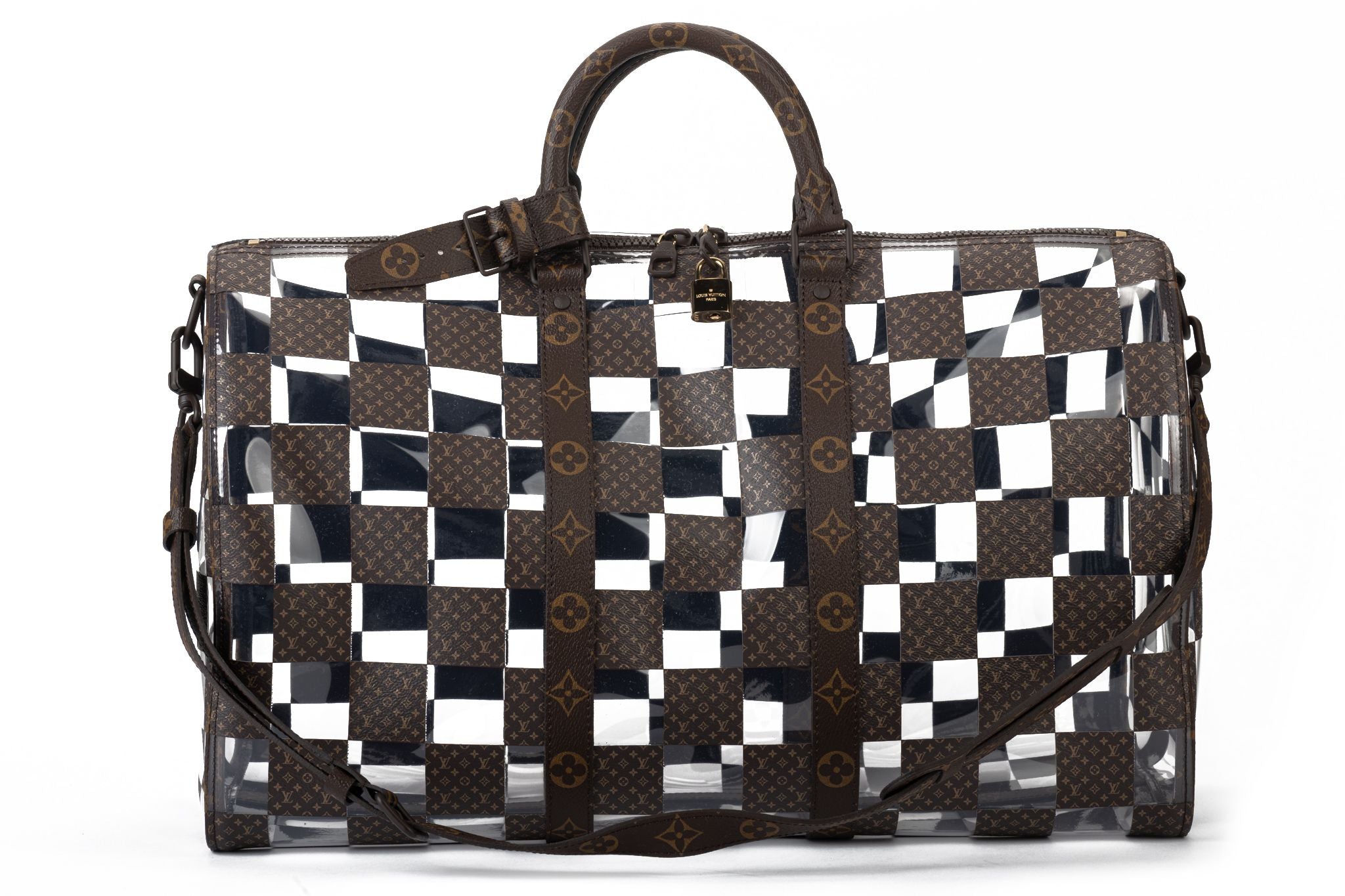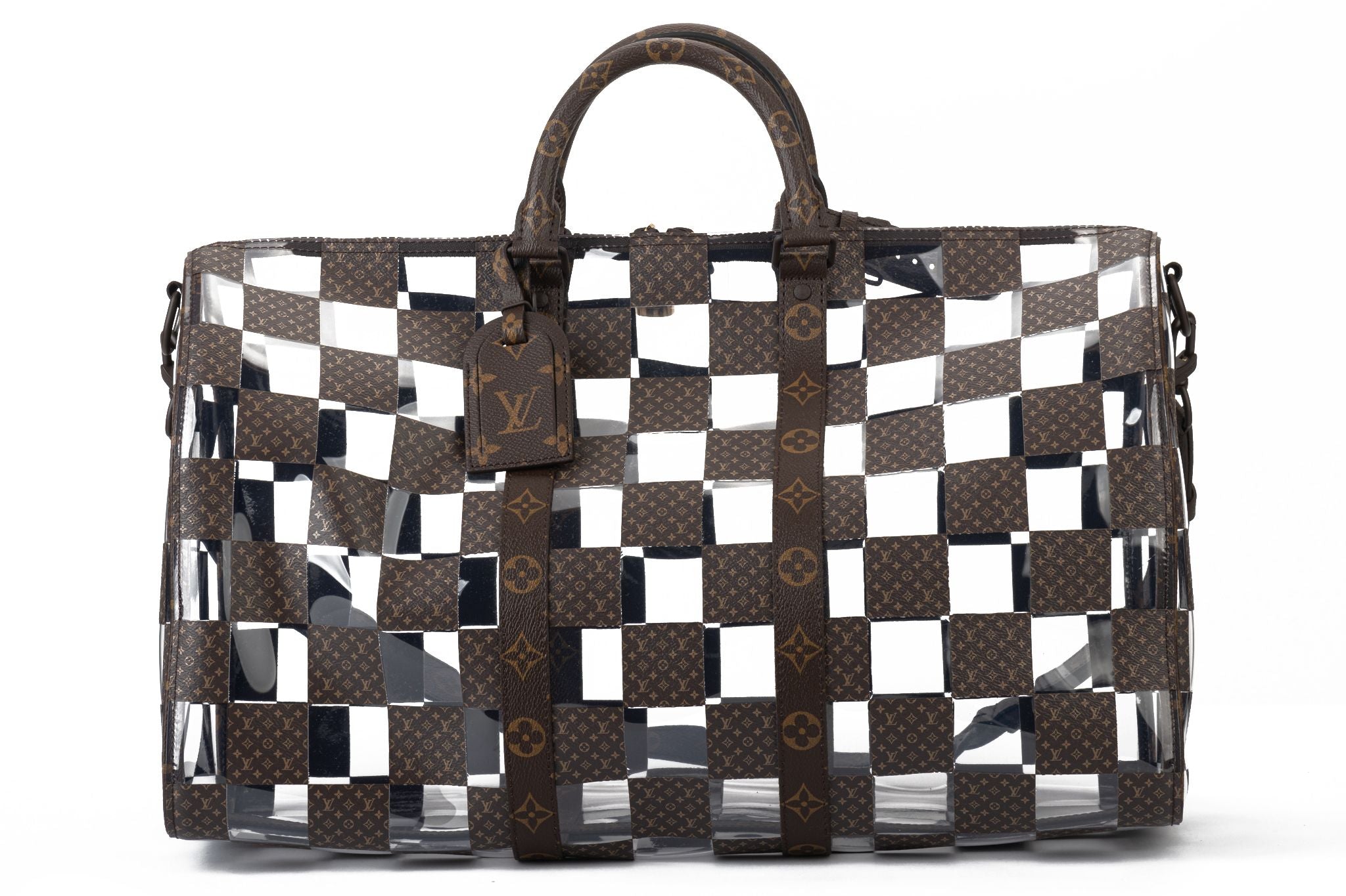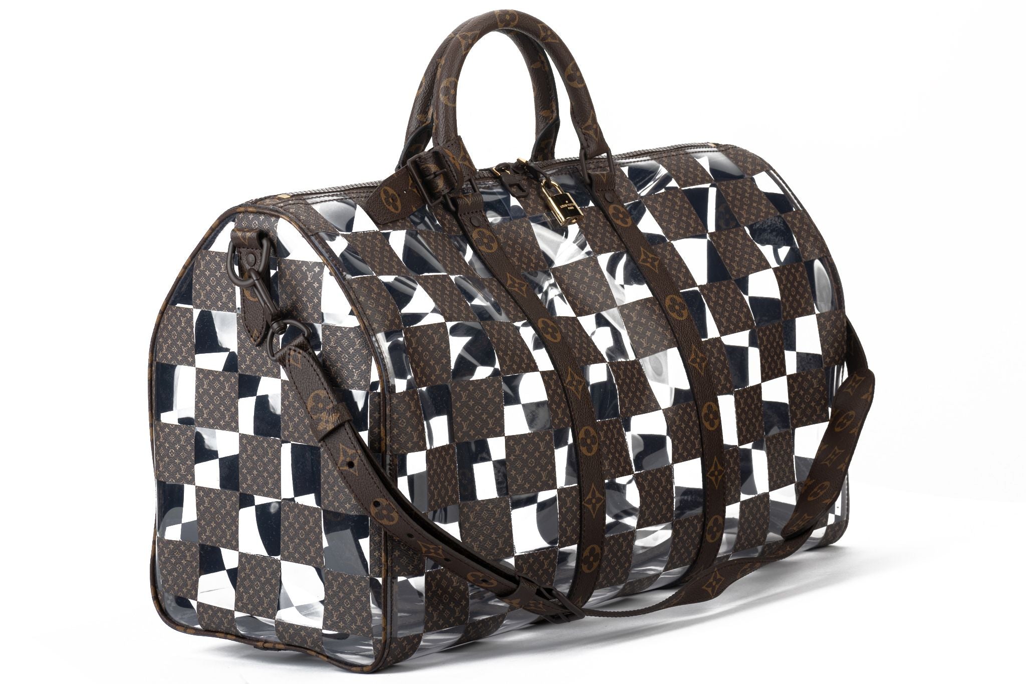 Louis Vuitton Fall Winter 2022 designed by Virgil Abloh, monogram chess keep all 50. Handle drop 4.5”. Shoulder strap drop 14”, adjustable. Comes with lock and 2 keys, name tag and additional bag holder. Original dust cover and box.