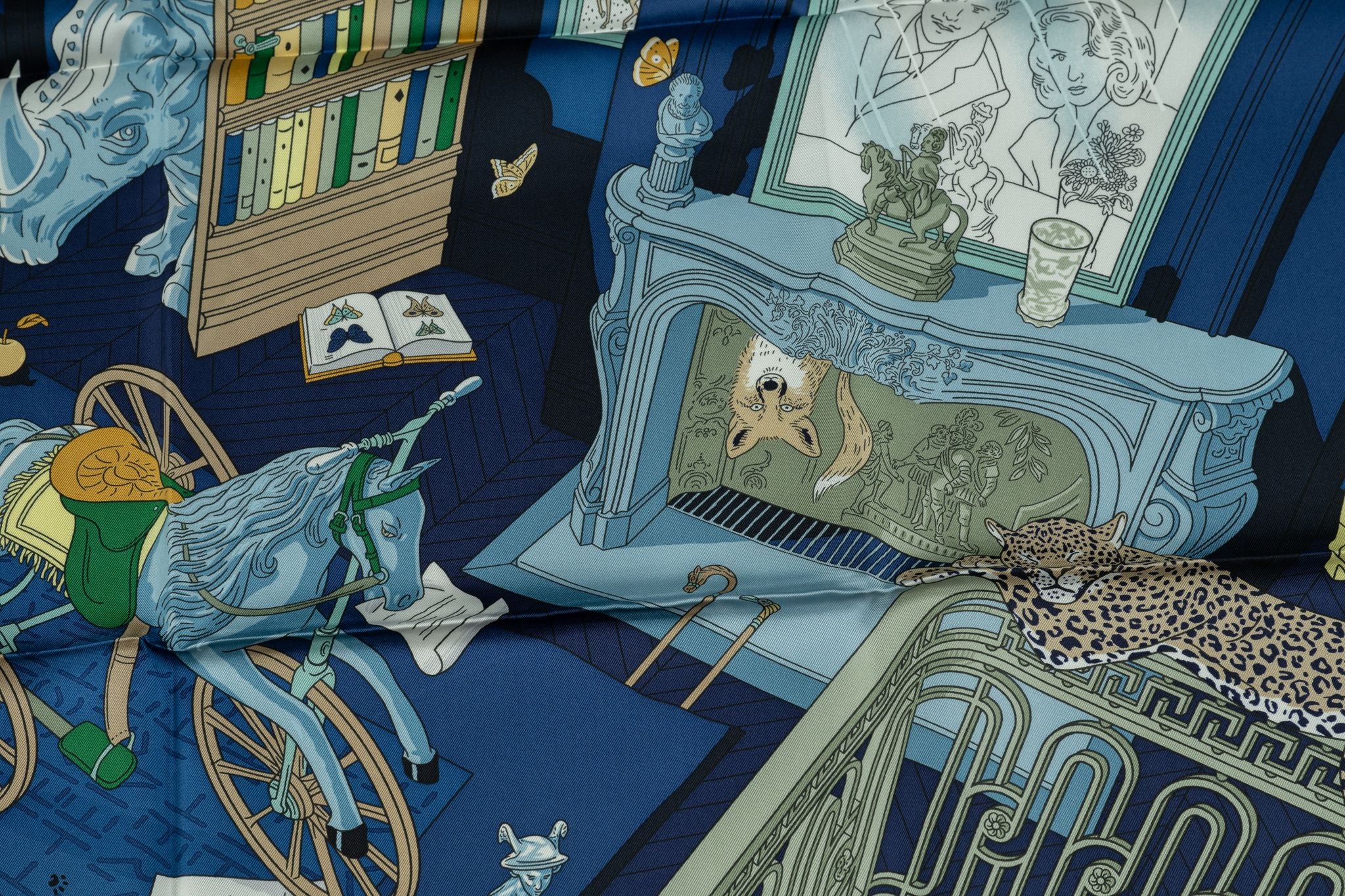 Condition: NewEra: Contemporary; 2000s: 26.5" L x 26.5" HMaterials: SilkColor: dark blue/multiHermès "Minuit au Faubourg"...