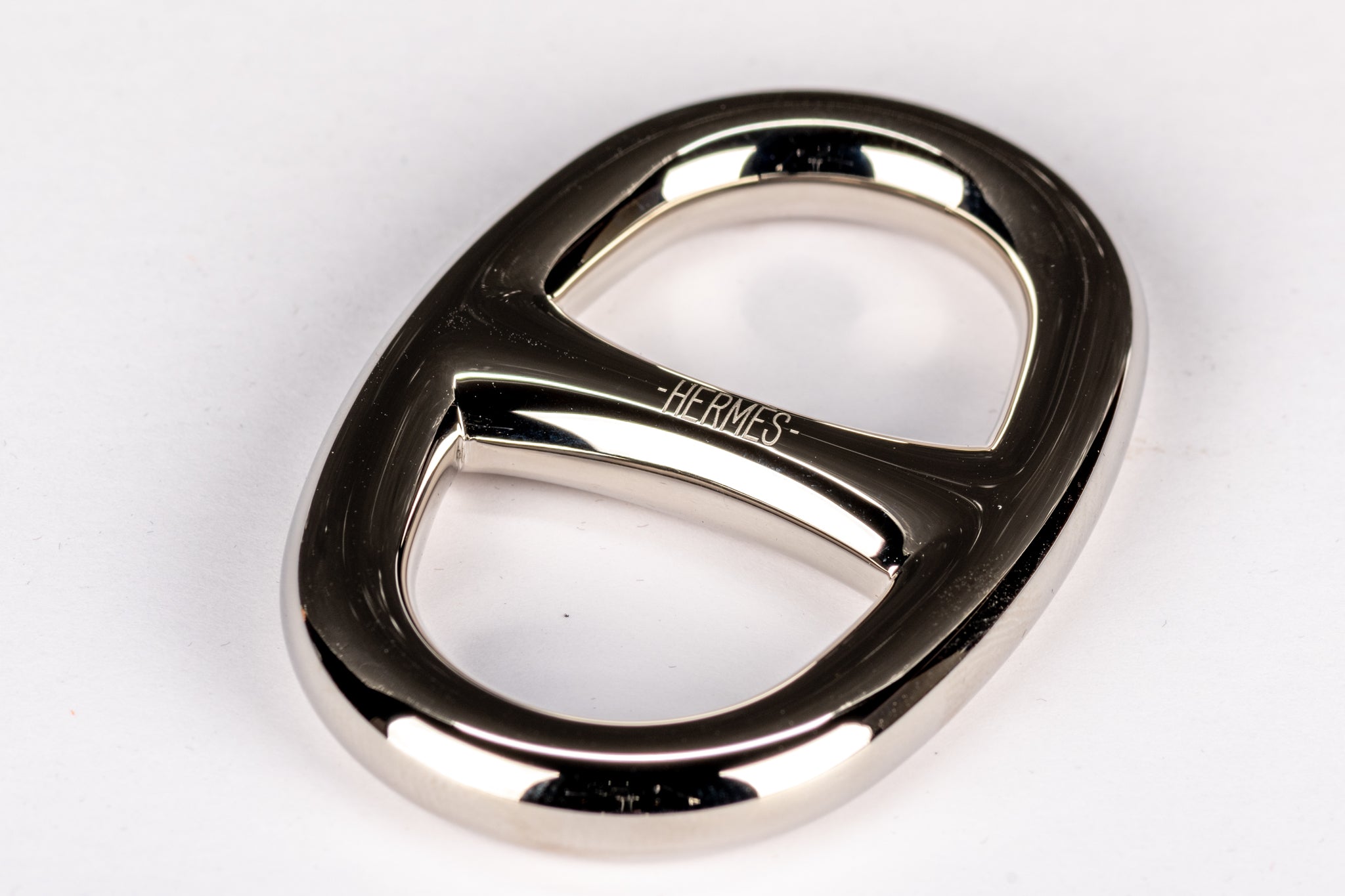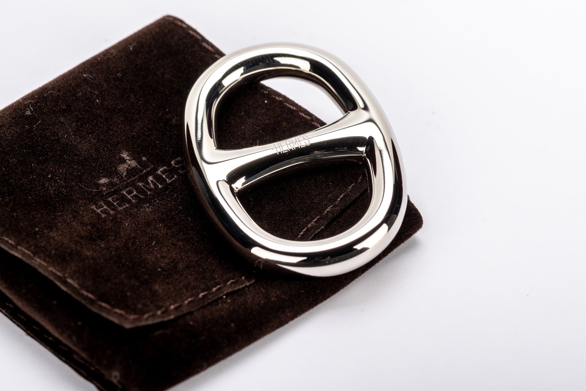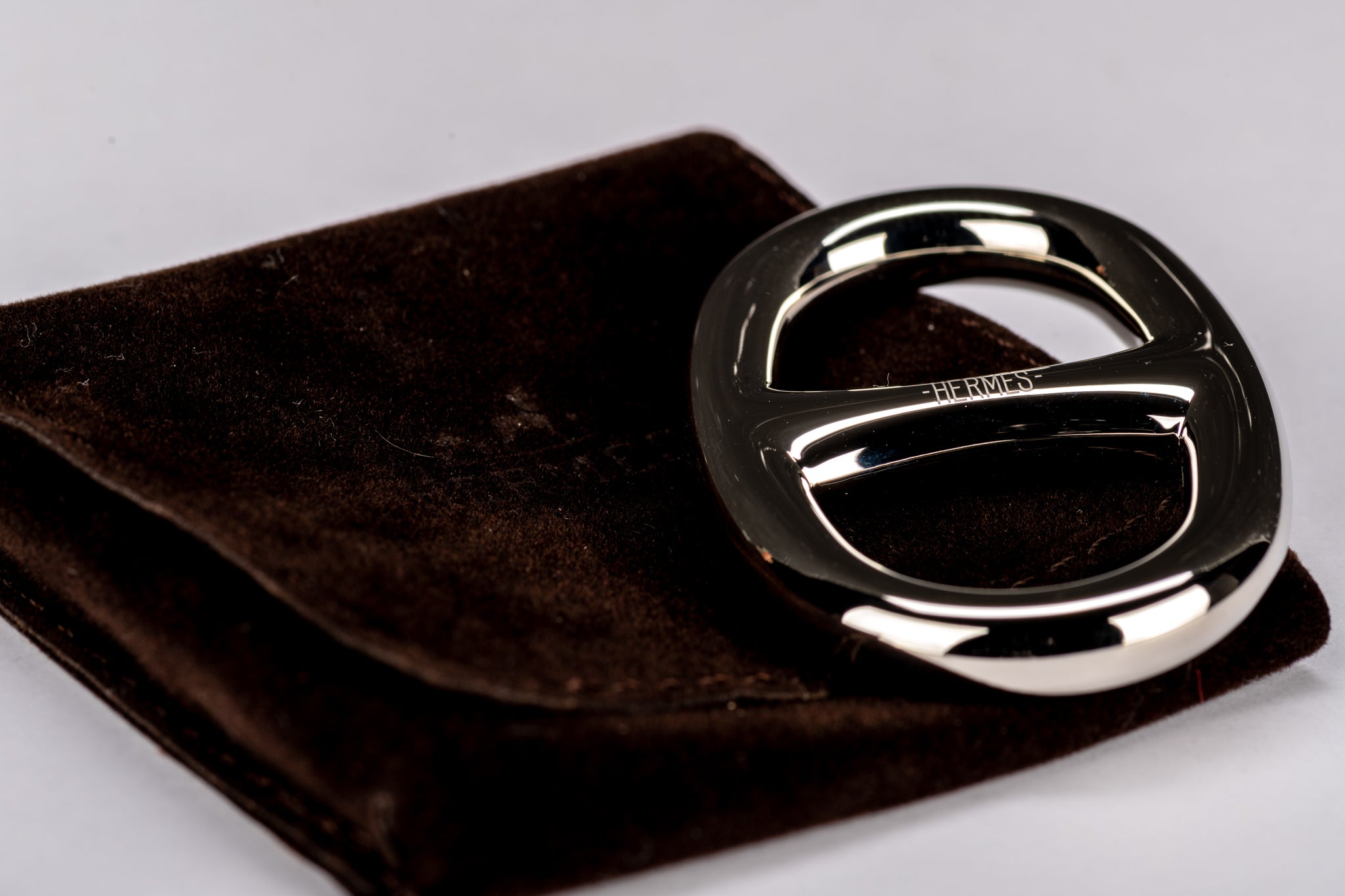 Hermès silver and palladium scarf ring. Comes with velvet duster and original box. Never used.